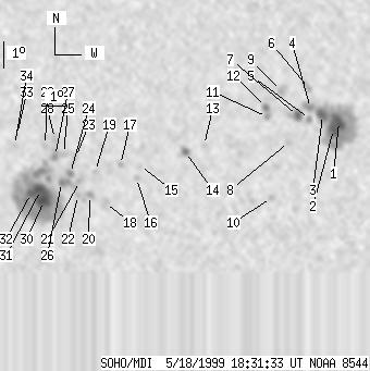 back to the solar disc SOHO MDI 1999-05-18 18:31:33 UT ![]() |